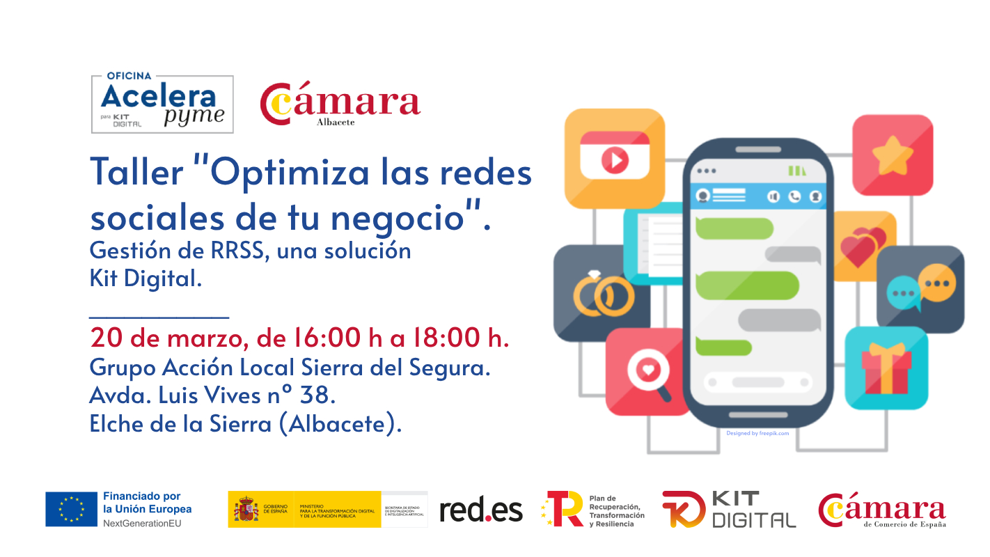 La Oficina Acelera Pyme para Kit Digital de la Cámara de Comercio de Albacete organiza en colaboración con el Grupo de Acción Local Sierra del Segura una jornada/taller presencial el próximo 20 de marzo de 2025 con horario de 16:00 a 18:00.
