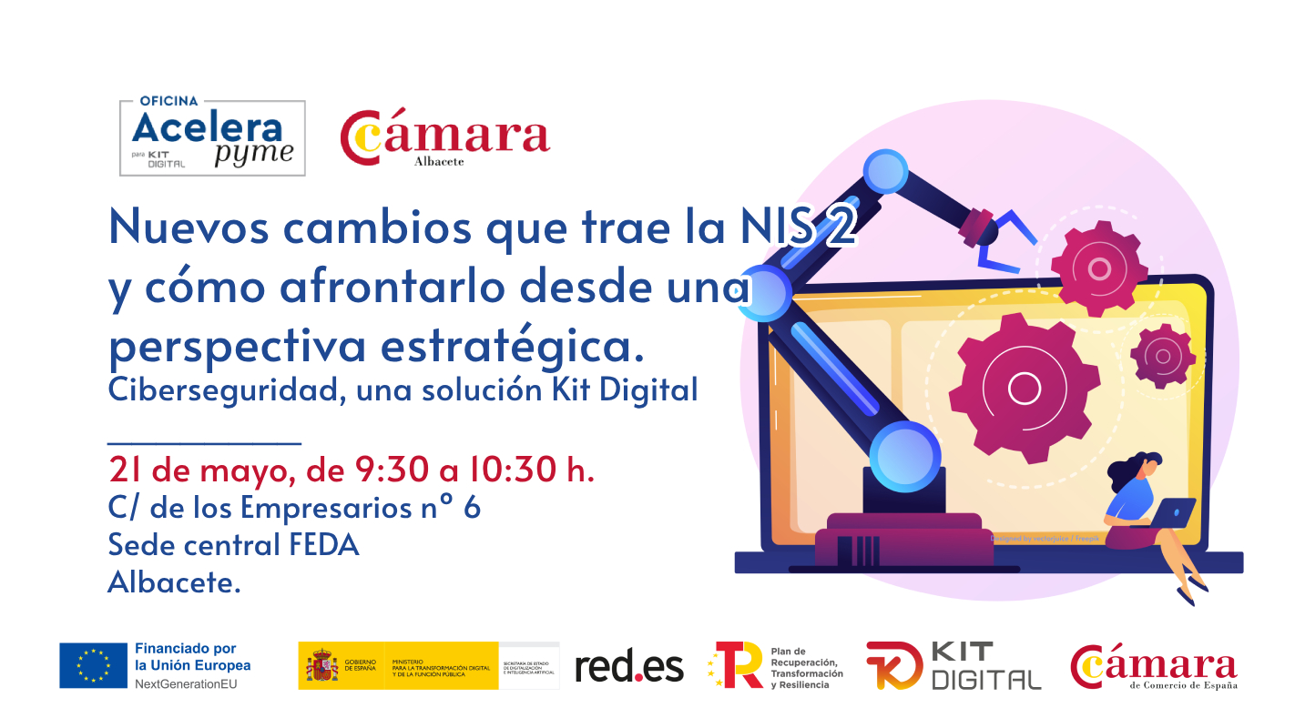 La Oficina Acelera Pyme para Kit Digital de la Cámara de Comercio de Albacete organiza una jornada presencial el próximo 21 de mayo, en la que se abordarán las implicaciones clave de la nueva Directiva NIS2 en España.